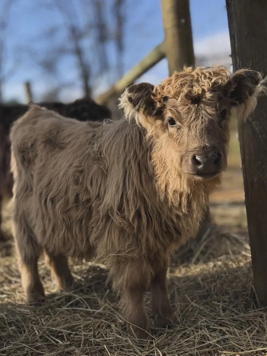 We do not currently have any calves available. However, we are actively working toward expanding our herd and beginning our breeding program. We’re excited to start the process with our registered miniature Highland bull, Bradley, with Cooper joining the program once he is old enough.